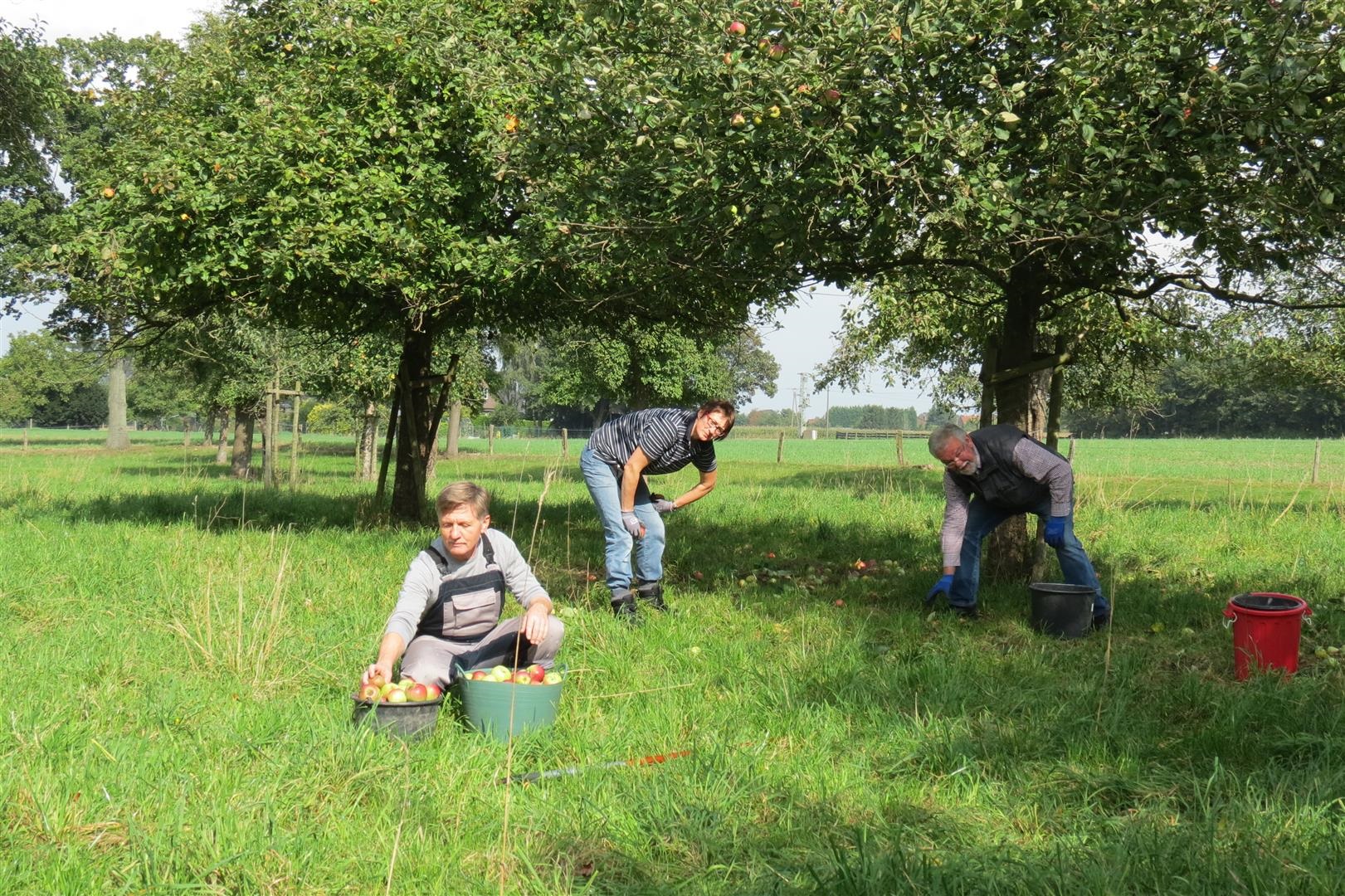 Obstlese [Foto: Christian Chwallek] Der Streuobstwiesenschutz hat in Alpen in den letzten 8 Jahren eine rasante Entwicklung erfahren. Allein auf kommunalen Flächen sind seither vom NABU fast 350 Obstbäume alter Niederrhein typischer Obstsorten gepflanzt worden. Der Ratsbongert am Dahlacker nimmt hier eine herausragende Stellung ein, denn hier wachsen mittlerweile 165 Bäume, die von Obstbaumpaten gestiftet wurden.